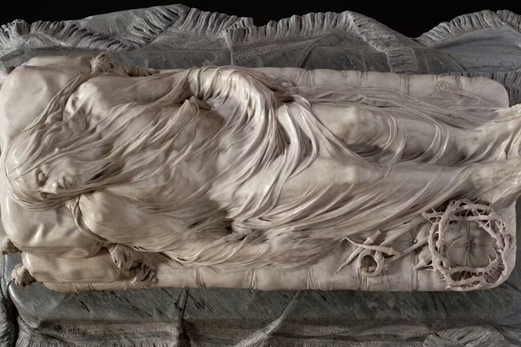 Il capolavoro più celebre è senza dubbio il Cristo Velato, scolpito da Giuseppe Sanmartino nel 1753. Considerato una delle sculture più impressionanti al mondo, rappresenta Cristo deposto avvolto da un velo di marmo talmente sottile e realistico da sembrare trasparente. L’incredibile resa del velo ha alimentato leggende e studi per secoli, rendendo l’opera un’icona internazionale dell’arte scultorea.
