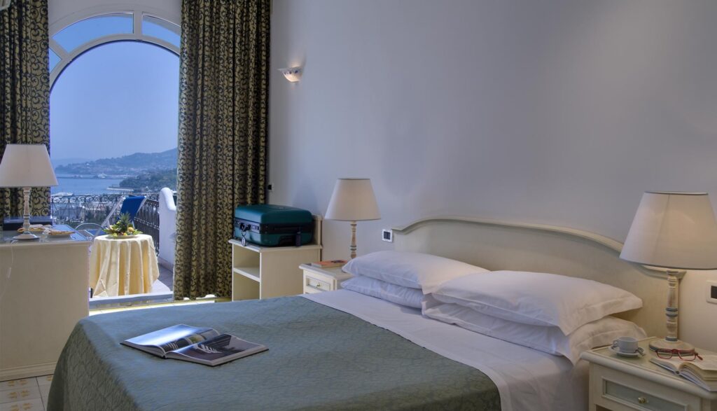 All'albergo Terme San Lorenzo troverete camere dotate di ogni moderno comfort e potrete scegliere la camera con balcone o terrazzo per godervi a pieno la magnifica vista sull'intera baia e parte del Golfo di Napoli fino al Vesuvio. Circondato da un rigoglioso giardino, preparati ad un elisir di benessere naturale nell'area SPA dotata di piscine al coperto,termale naturale 38°C e piscina idromassaggi 38° con acqua salata e piscine su balze esterne con acqua termale e/o salata con possibilità di nuoto ed altri giochi d'acqua , tutte temperate.