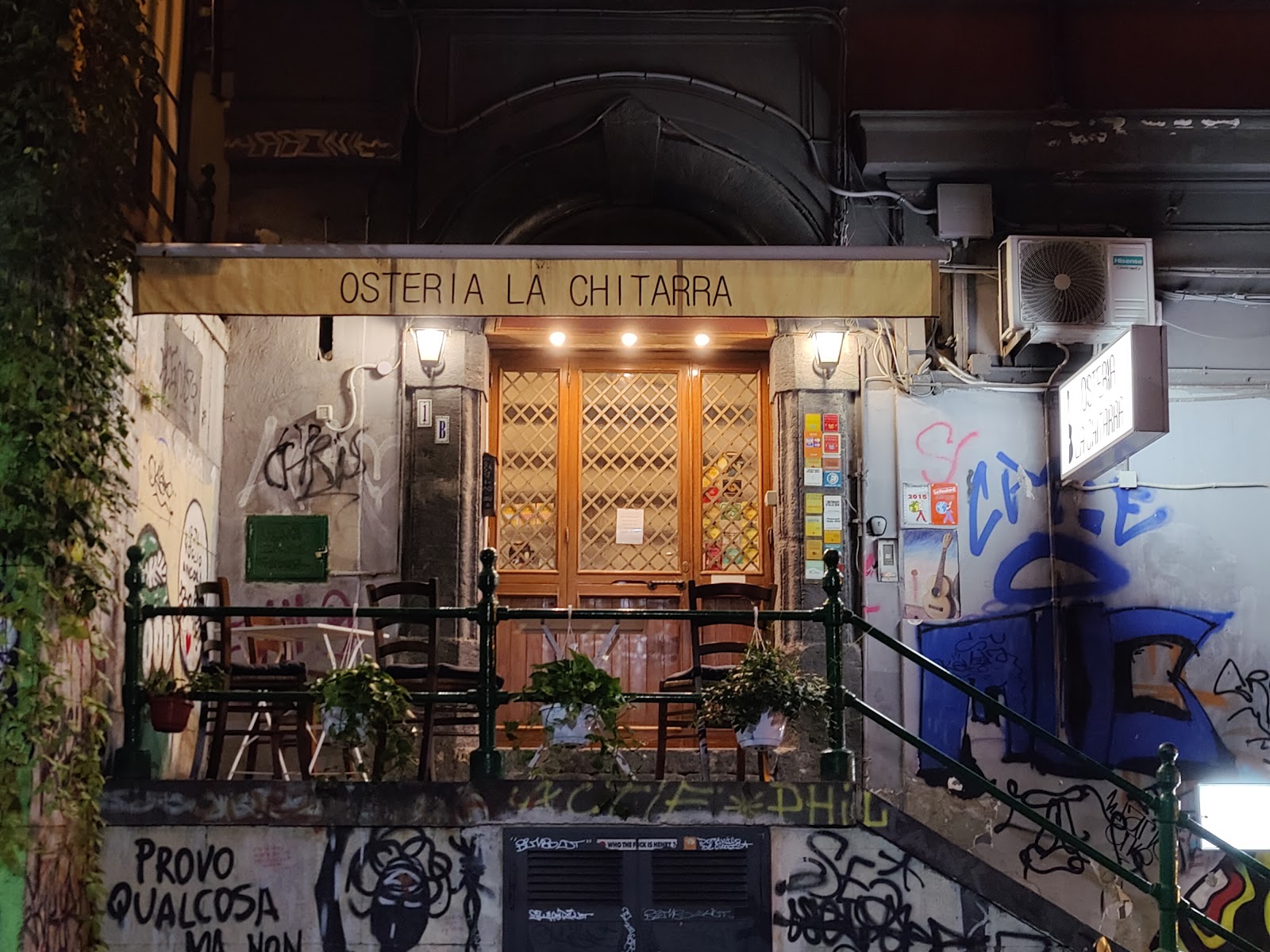 Immersa nel cuore pulsante di Napoli, l'Osteria La Chitarra è un luogo dove tradizione e sapore si incontrano in un abbraccio caloroso. Situata in Rampe S. Giovanni Maggiore, 1, questa osteria accogliente offre un'atmosfera intima e familiare, perfetta per trascorrere momenti speciali. Questo luogo è davvero uno scrigno della memoria, un posto del cuore. Qui ci sono segni della storia di Napoli rari e introvabili. Una dozzina di tavoli sistemati per ottimizzare il numero delle sedute, pavimento in cotto, le pareti calde, foto, cartoline e soprattutto una chitarra al muro. Insomma una vera osteria napoletana, dove si respira pura e cordiale convivialità.