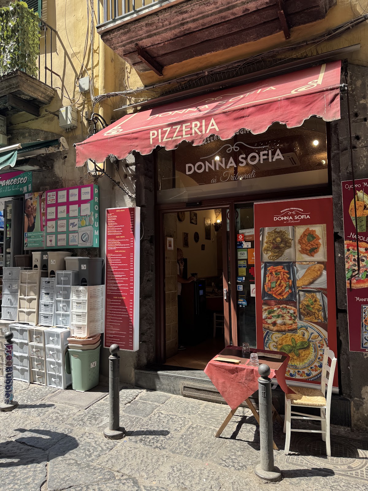 Benvenuti alla Pizzeria Donna Sofia Ai Tribunali, un angolo di autentica tradizione napoletana situato in Via dei Tribunali, 89. Qui, ogni pizza è un'opera d'arte, preparata con ingredienti freschi e di alta qualità, seguendo le ricette tramandate di generazione in generazione. Il nostro ambiente accogliente e familiare vi farà sentire a casa, mentre gustate la vera pizza napoletana, cotta nel forno a legna. Che siate in cerca di un pranzo veloce o di una cena da condividere con amici e familiari, da noi troverete sempre un sorriso e un servizio attento. Vi aspettiamo per farvi vivere un'esperienza culinaria indimenticabile!