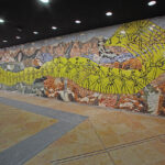 Tra gli elementi più affascinanti ci sono i mosaici realizzati dall’artista sudcoreana Kimsooja, che decorano le pareti con giochi di luce e colori ispirati al mare e al cielo. L’illuminazione, studiata per esaltare profondità e movimento, trasforma gli ambienti in una vera e propria galleria d’arte sotterranea.